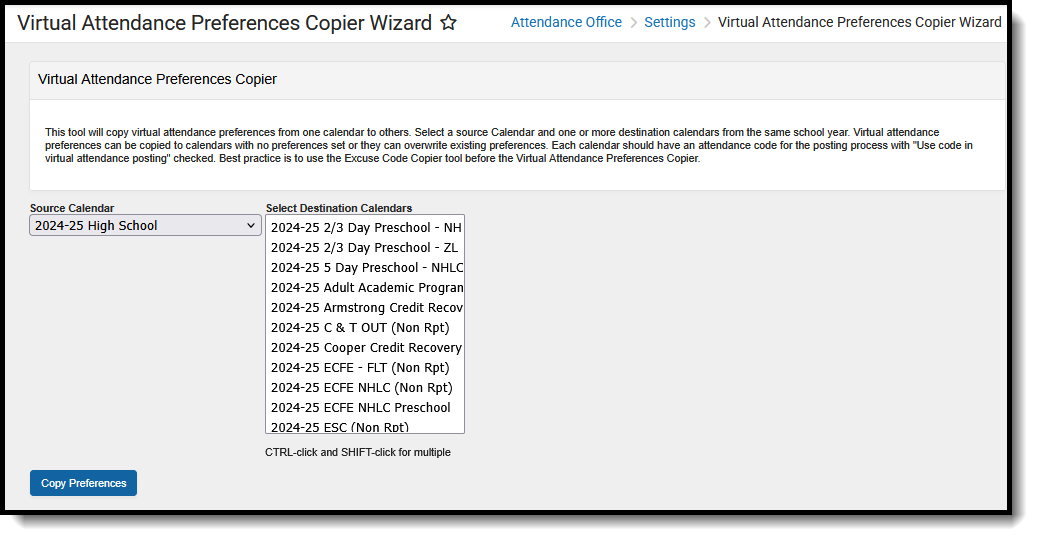 See the Virtual Attendance Preferences Copier Wizard article for more information.