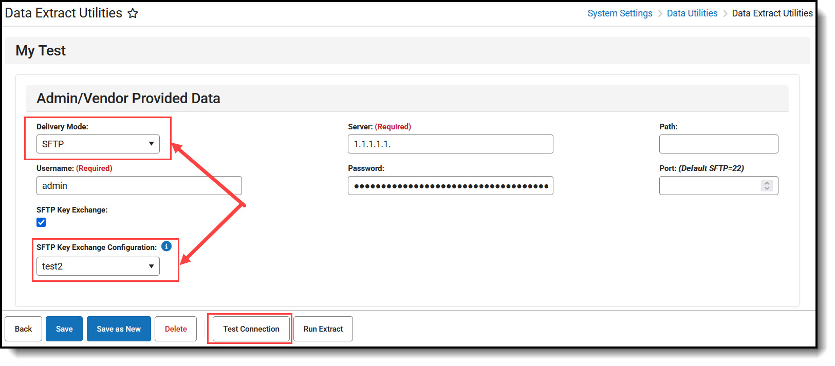 In order to use established SFTP keys, an extract within the Data Extract Utilities must be configured to use a Delivery Mode of SFTP.