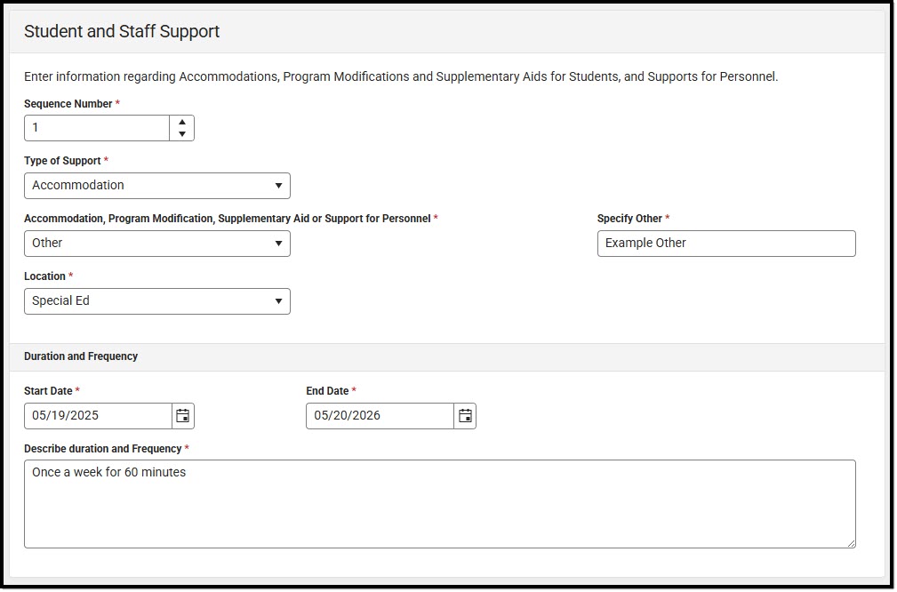 Special Ed Services Detail Screen