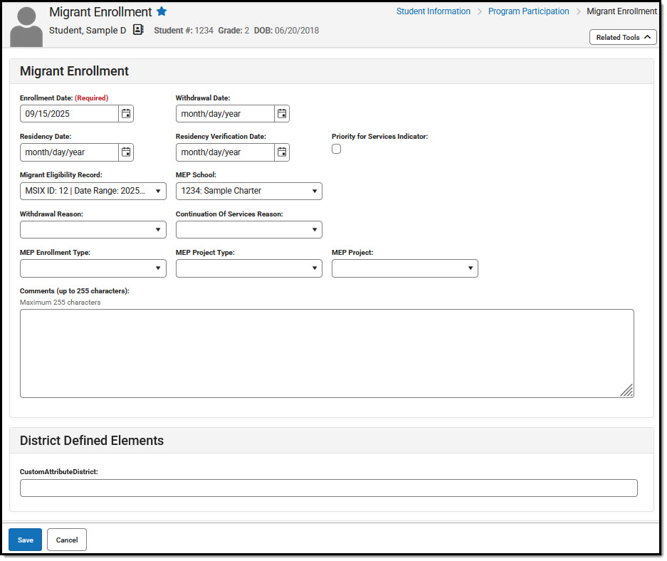 This article explains how to enter Migrant Enrollment information for an individual student.