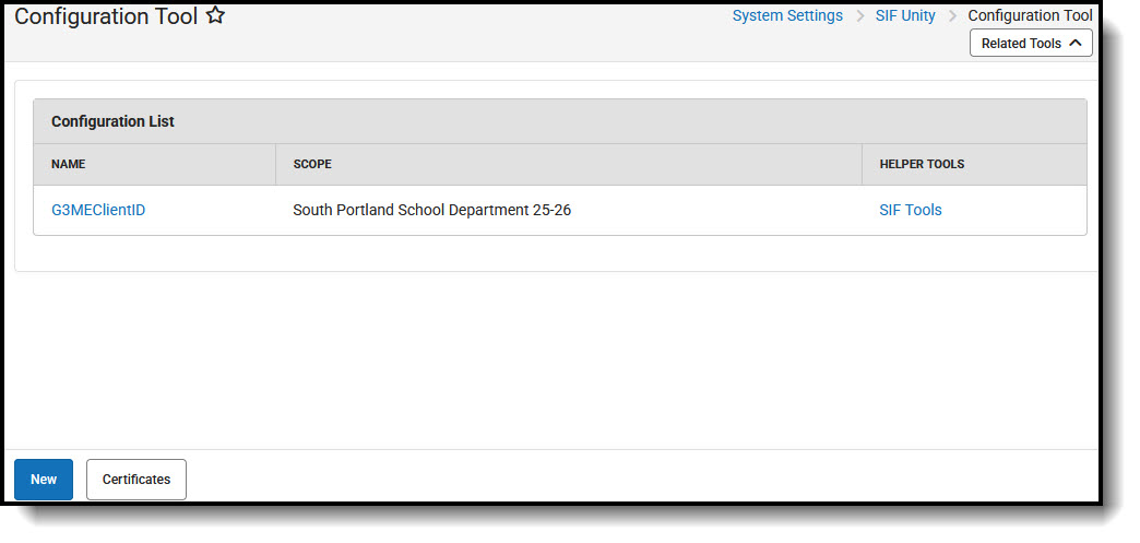 | Certificates | Allows users to manage SIF Certificates. Please see the SIF Unity Certificates article for more information. |